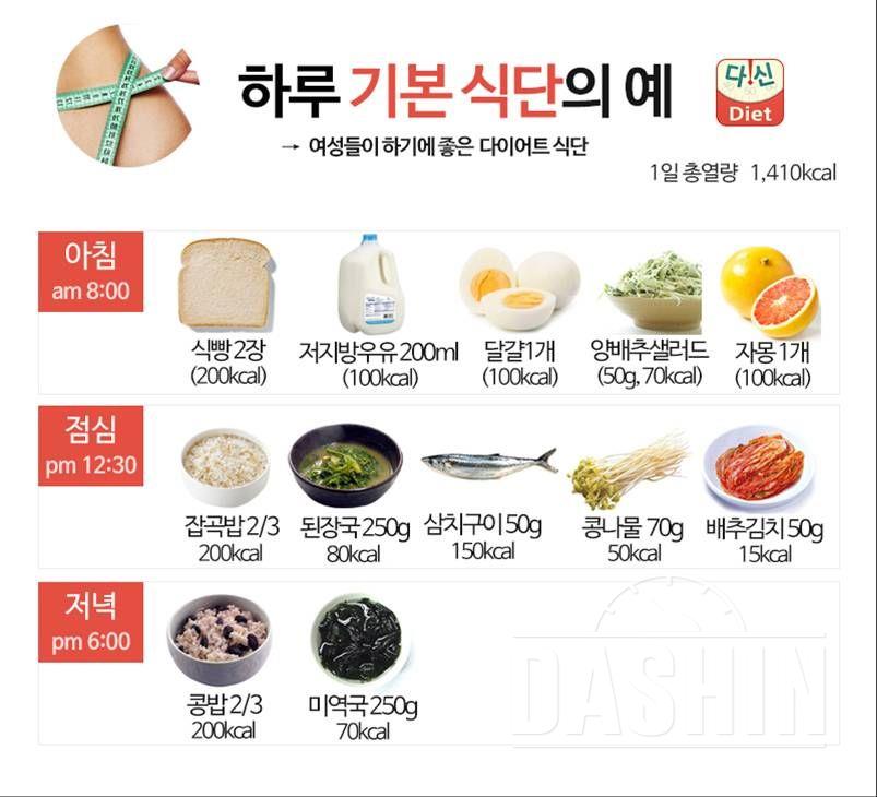여성을 위한 일일 식단을 소개할게요. 하루 1,410칼로리로 구성된 식단을 통해 건강하게 다이어트할 수 있어요.